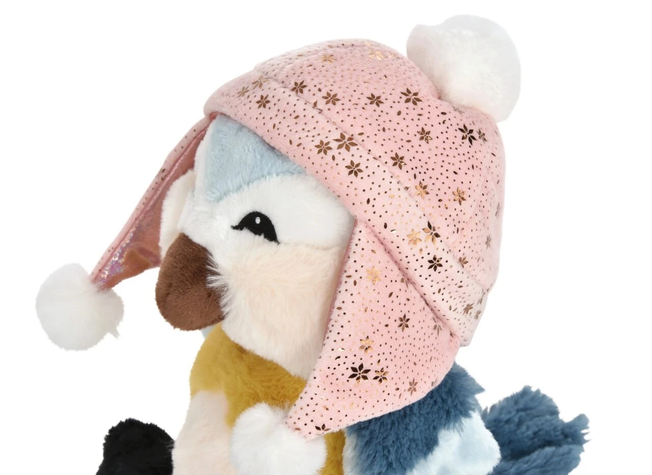Ein hellblauer Scheitel, die blauen Flügel- und Schwanzfedern und die leuchtend gelbe Brust machen das flauschig weiche Blaumeisenküken Andoli aus Plüsch einfach unverwechselbar. Die kleine, kompakte Gestalt, der braune Schnabel und sein niedlicher Gesichtsausdruck geben Andoli ein besonders putziges Aussehen. Mit seiner plüschigen Mütze im Metallic Look ist er winterlich warm angezogen. Die hochwertige Verarbeitung und das detailverliebte Design des einzigartigen Plüsch-Vögelchens laden zum Spielen und Schmusen ein. Der Vogel in Schlenkerplüsch-Ausführung ist ein treuer Spielgefährte und liebenswerter Begleiter auf Reisen. Die Winter Friends Kollektion ist Bestandteil der nachhaltigen Produktwelt NICI GREEN! Für alle NICI Green-Produkte werden fast ausschließlich recycelte Materialien verwendet, die hauptsächlich aus PET-Flaschen hergestellt wurden.