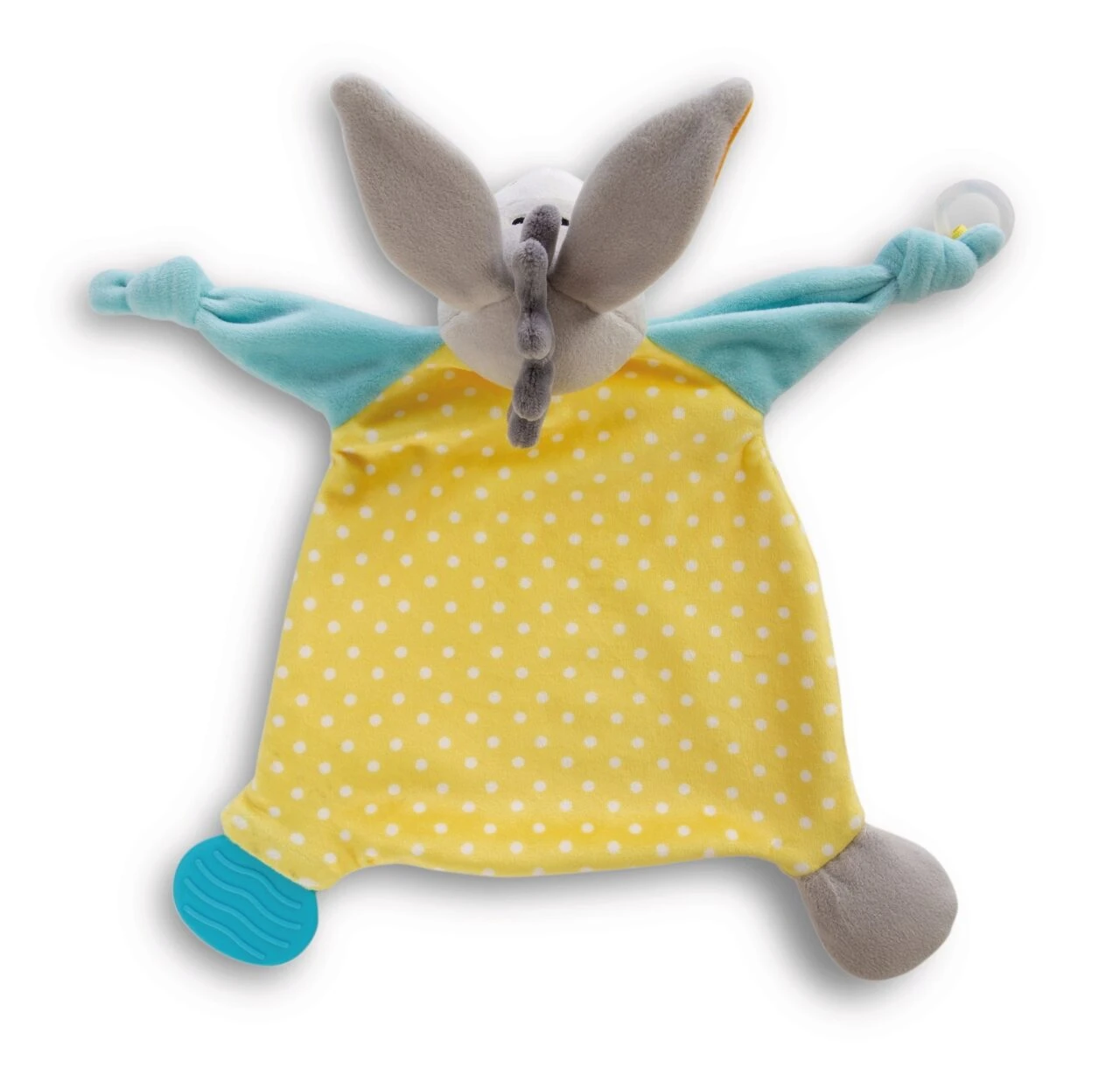 Das Schmusetuch Esel mit seinen langen Eselsohren ist ein unverzichtbarer Begleiter für Babys und Kleinkinder. Das super softe Material und die geknoteten Arme des MyFirstNICI Schmusetuchs, laden zum Greifen, Fühlen und Knuddeln ein. Dank des Befestigungsringes kann das liebevoll gestaltete Schmusetuch ganz leicht am Schnuller, egal ob mit oder ohne Henkel, befestigt werden. Der integrierte, weiche Soft-Beißer mit Struktur hilft Baby beim Zahnen. Eine wundervolle Geschenkidee zur Geburt!