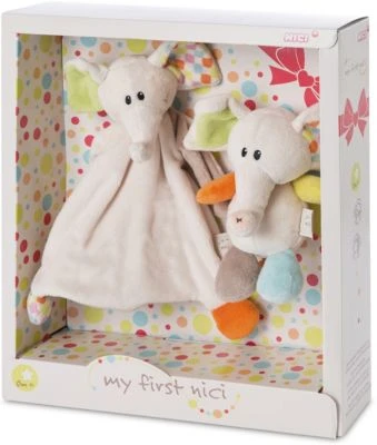 Kuschelweich und superniedlich! Mit diesem bezaubernden Kuschel-Set von NICI kommt Fühl- und Kuschelvergnügen für die Kleinsten. Das Schmusetier begeistert mit farblich abgesetzten Elementen und auch das weiche Schmusetuch hat Öhrchen und Knoten an den Ecken für haptische Erlebnisse. Das Set eignet sich perfekt als Geschenk und die beiden Kuschel-Freunde werden ganz schnell zu unverzichtbaren Alltagsbegleitern.